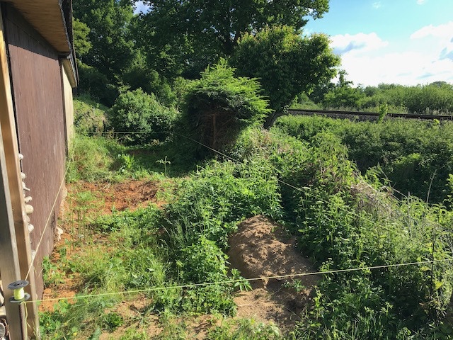 Ich hatte in meinem Beitrag über meine Parkinson Erkrankung schon erklärt, wie gut die großen Bewegungen beim Pteanque sich auf meine körperliche Verfassung und den Parkinson auswirken. Eines Abends hatte meine Frau die Idee, bei uns im Garten eine Boulebahn für mich zu bauen. Dadurch könne ich so oft wie möglich meiner "Boule-Therapie" nachgehen. Glücklicher Weise hatten wir, zwischen einem großen Schuppen und der Bahnlinie, 12 Meter reine Wildnis zur Verfügung.