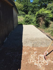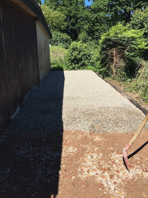 Danach kam die Tragschicht (Split 8/16), wieder wurde gut verdichtet.