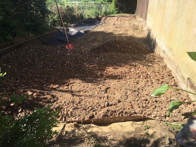 So wurde 2 Wochen später mit der Arbeit begonnen. Als Hilfestellung habe ich mir vom Österreichischen Petanque Verband eine Bauanleitung aus dem Internet heruntergeladen. http://www.boule.at/upload/Boulebahnen.pdf Wirklich eine hervorragende Beschreibung für einen mehrschichtigen Aufbau.