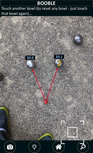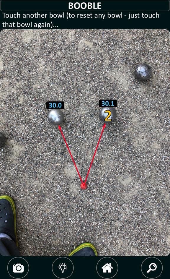 Die entscheidende Aufnahme. Es liegen 7 Kugeln, Julian hat den Punkt 20 cm links von der Sau, Stanley legt dazwischen, ich schieße mit der letzten Kugel die Sau. Neuaufnahme! Julian legt wieder gut vor. Ich lege schlecht nach. Stanley besser, ich fast gleich mit Julian. Dann legt Stanley seine letzte Kugel direkt an die Sau. Ich schieße sie und die Sau geht Millimeter zur Seite. Wir messen und der Punkt geht mit 1 Millimeter an Julian. Schade, dass wir davon kein Video haben, aber ein Bild vom finalen Frame.